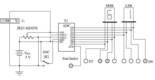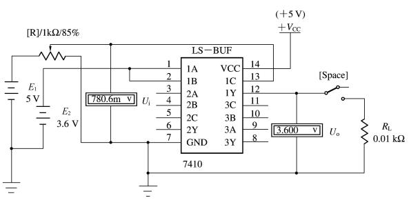 ①启动EWB5.0软件,在EWB主窗口的电路工作区内创建如图4.1.1所示的TTL门电路的传输特性测试电路。