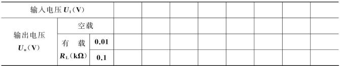 ③测试电路中,利用调节可变电阻来改变被测输入端的输入电压值Ui,在输出端可同时观察到输出电压Uo的变化。并将两者关系分别用列表(结果填入表4.1.1)和坐标曲线表示。