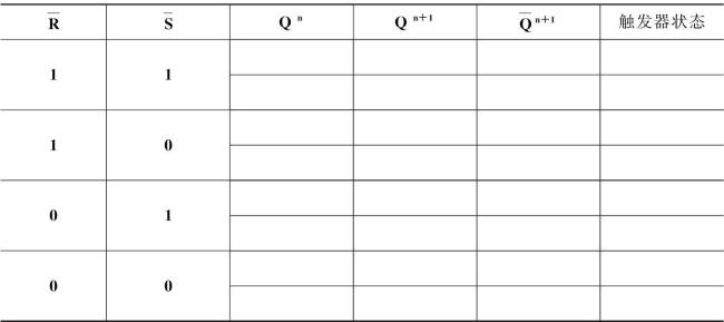 图4.1.7是一个基本RS触发器,试创建一个该电路的测试电路,并将测试结果填入特性表(见表4.1.6)中。