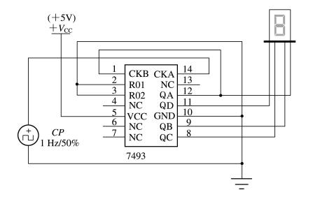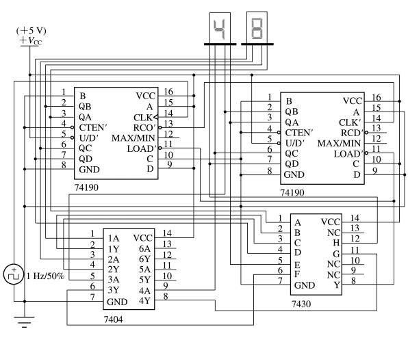 c. 试用74160构成五十进制加法计数器,用带译码器的七段LED数码管作为显示器件,输入是频率为1Hz的时钟信号。