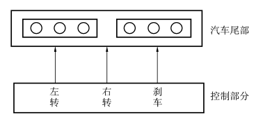 根据电路要求,进行电路分析、设计。图4.3.1为汽车尾灯示意图。