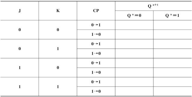 ④将该器件的逻辑功能测试结果填入表4.1.8的JK触发器特性表中。