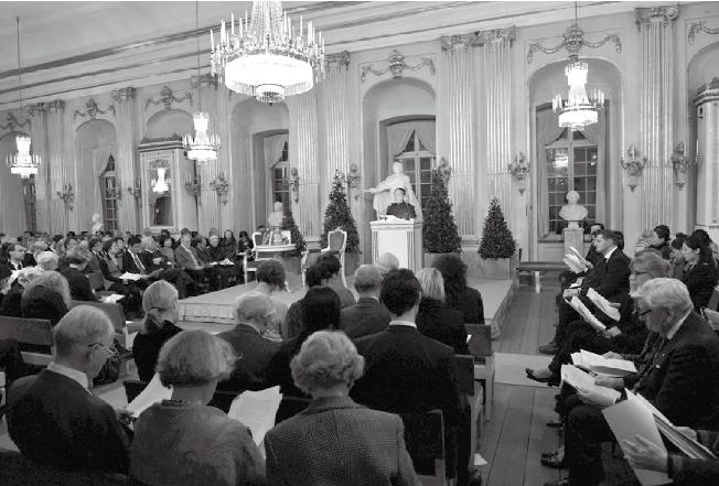 2012年12月8日,莫言在瑞典蓝色大厅发表演讲。