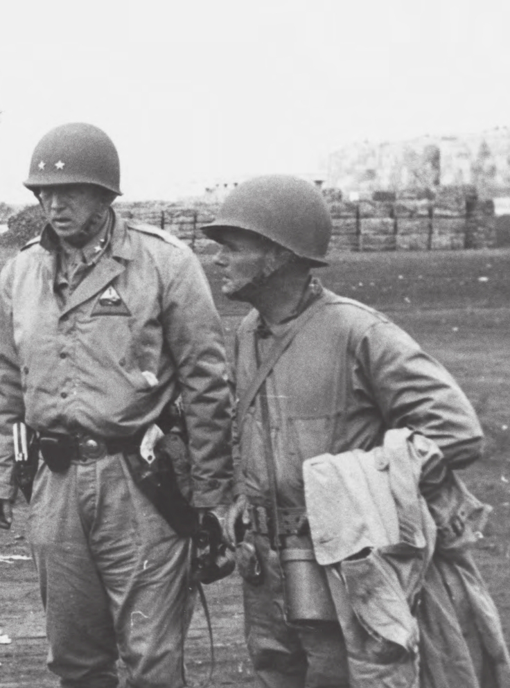 巴顿(图左)为自己塑造了无畏与进取的形象。和拿破仑一样,他总是现身在前线,令部队振奋,并且激起他们的斗志。