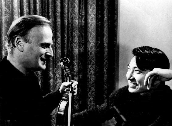 傅聪与岳父梅纽因一起研究贝多芬和莫扎特奏鸣曲,为二人的合作演出做准备(一九六〇年代)
