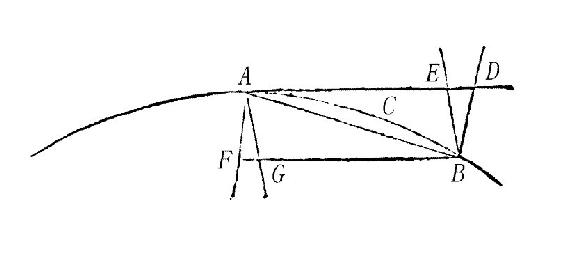 系理2 如果通过B和A引另外的直线BE,BD,AF和AG与切线AD及其平行线BF相截,则所有线段AD,AE,BF和BG以及弦AB与弧AB彼此的最终比为等量之比。