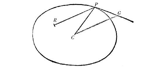 如果物体P由于趋向任意给定的点R的向心力在任意给定的圆锥截线的周线上运动,圆锥截线的中心为C,需求向心力的定律;引CG平行于半径RP,并与轨道的切线PG交于G;则那个力(由命题X的系理1和解释,以及命题VII的系理3)如同(CGcub.)/(RPquad.)。