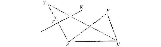 设焦点S,点P和切线TR被给定,需求另一焦点H。往切线上落下垂线ST,并延长它至Y,使得TY等于ST,则YH等于主轴。连结SP,HP,且SP是HP和主轴之间的差。按照这种方式,如果给定更多的切线TR,或更多的点P,总能找到由所说的点Y或P到焦点所引的同样数目的线YH或PH,它们或者等于轴,或者它们以给定的长度SP不同于轴;于是它们或者相等,或者有给定的差,且由此,由上面的引理,另外一个焦点H被给定。同时拥有了两个焦点和轴的长度(它或者为YH,或者,如果轨道为椭圆,为PH+SP;若不然,轨道为双曲线,为PH-SP)也就有了轨道。此即所求