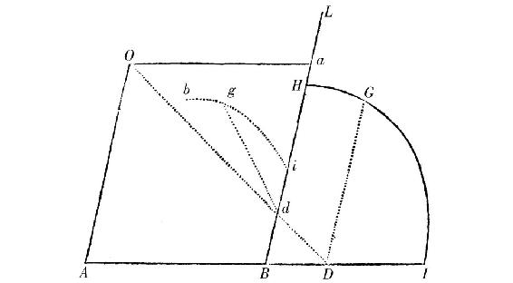 设要变换的是任意图形HGI。随意引两条平行线AO,BL,截第三条位置给定的任意直线AB于A和B,且由图形的任意一点G,往直线AB引任意的GD,它与OA平行。然后由另一点O,它在直线OA上被给定,往点D引直线OD,它交直线BL于d,并由交点以与直线BL包含任意给定的角竖立直线dg,且它具有与Od之比如同DG比OD具有之比;则点g为点G在新图形hgi中对应的点。由同样的方式,原图形中的每个点给出新图形中同样数目的点。所以,设想点G持续运动走遍原图形中的所有点,则点g以类似的持续运动走遍新图形中的所有点并画出同一图形。为了便于区分,我们称DG为原纵标线,dg为新纵标线;AD为原横标线,ad为新横标线;O为极,OD为交截半径,OA为原纵半径,且Oa(由被补足的平行四边形OABa)为新纵半径。