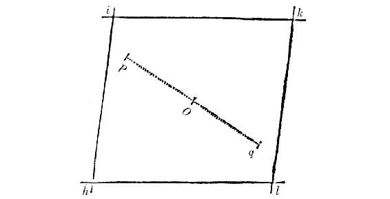 由切线中任意两条的公共的相交部分到其余两条的公共的相交部分引一条无穷直线,且同样用作原纵半径,此图形被变换为(由引理XXII)一新图形,且两两交于原纵半径的切线,现在成为平行的。令那些[切线]hi和kl,ik和hl连接成平行四边形hikl。且p是在这个新图形中的点,它对应于原图形中的给定的点。过图形的中心O引pq,且使Oq等于Op,则q为在此新图形中圆锥截线应经过的另一点。由引理XXII,这个点经逆运算被变换到原图中,且在那里有两个点,过它们画出轨道。而且,过同样的点,由问题XVII可画出那条轨道。此即所作