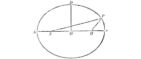 但是,由于这一曲线难于画出,应用逼近的方法求解较好。一方面发现某个角B,它比57.29573度的一个角,此角对着等于半径的一条弧,如同焦点之间的距离SH比椭圆的直径AB;另一方面亦发现某一长度L,它比半径按照同一个比的反比。一旦这些被发现,问题可由如下的分析解决。由任意的作图,或者由甚至是猜测,得知物体的位置P,它非常靠近物体的真实位置p。然后,向椭圆的轴上落下纵标线PR,由椭圆的直径的比,外接的圆AQB的纵标线RQ被给定,它是以AO为半径的角AOQ的正弦,并截椭圆于P。由质朴的数值计算近似地发现那个角就足够了。与时间成比例的角亦被知道,亦即,它比四个直角,如同一段时间,在此期间物体画出弧Ap,比物体在椭圆上运行一周的时间。设那个角为N。既取一个角D,它比角B如同角AOQ的正弦比半径;又取一个角E,它比角N-AOQ+D如同长度L比同一长度L减小角AOQ的余弦,当那个角小于直角时;但当它大于直角时,增加那个角的余弦。其次取一个角F,它比角B,如同角AOQ+E的正弦比半径,又取一角G比角N-AOQ-E+F如同长度L比同一长度减小角AOQ+E的余弦,当那个角小于直角时;但当它大于直角时,增加那个角的余弦。再次取一个角H比角B,如同角AOQ+E+G的正弦比半径;又取角I比角N-AOQ-E-G+H,如同长度L比同一长度减小角AOQ+E+G的余弦,当那个角小于直角时;但当它大于直角时,加上那个角的余弦。且如此进行以至无穷。最终取角AOq等于角AOQ+E+G+I+…。再由它的余弦Or和纵标线pr,它比其正弦qr如同椭圆的短轴比长轴,得到物体的修正过的位置p。如果角N-AOQ+D为负的,在各处的E的“+”号必须变为“-”,且“-”号变为“+”。当角N-AOQ-E+F,和N-AOQ-E-G+H得出为负时,角G和I的符号应作同样的理解。但无穷级数AOQ+E+G+I+…收敛得如此迅速,以致很少需要进行到超过第二项E。且计算基于这一定理:面积APS如同弧AQ和自焦点S点到半径OQ上落下的垂线之间的差。
