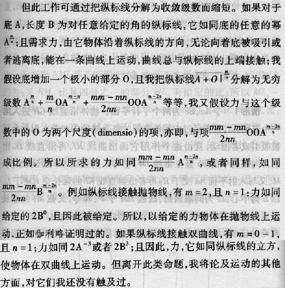 系理3 且因此,如果任意有限且一侧为平面的物体吸引正对着那个平面的中间的小物体,且小物体和平面之间的距离与吸引物体的宽广相比甚小,而吸引物体由相同的小部分构成,它们的吸引力按照距离的大于四次的一个幂的比减小;整个物体的吸引力很接近地按照一个幂的减小,它的底是那个甚小的距离,且指数比前一个指数小三。对由吸引力按照距离的三次比减小的小部分构成的物体,断言不成立;因为在这种情形,系理2中无限物体的那个较远的部分的吸引,总是无限地大于较近的部分的吸引。