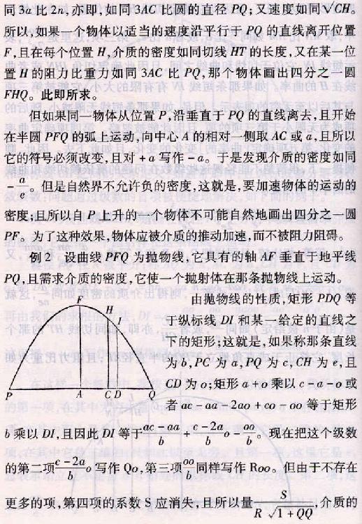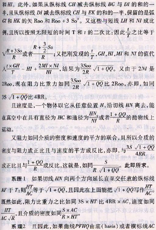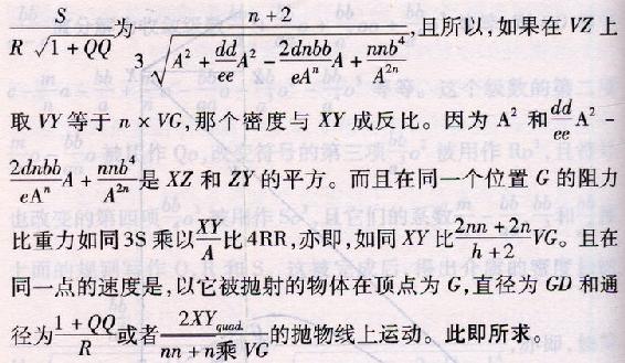 均匀的重力直接地趋向水平面,并设阻力如同介质的密度和速度的平方的联合:既要求在各个位置的介质的密度,它使得物体能在任意给定的曲线上运动;又要求在各个位置上物体的速度及介质的阻力。