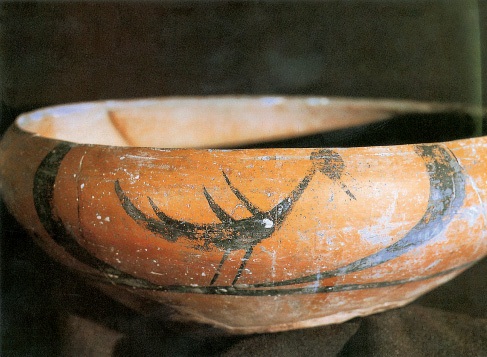 彩陶钵绘鸟纹 新石器时代 陶质彩绘 高12X口径32厘米 西安半坡博物馆藏