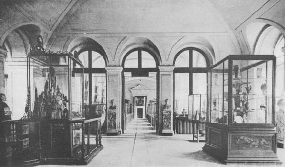 国家工艺博物馆是根据国民会议的法令在1794年创立的。1799年,十一世纪在圣马丁田园创建的原本笃会隐修院让给博物馆作馆址。各种工具、机械和机械图纸等等收藏逐渐积累起来。这些藏品中,最古老的是机械师雅克·德·沃康松(1709—82)私人收藏的机器等物,他于1782年遗赠给路易十六。沃康松曾利用这份收藏训练工人。它包括一台丝织机。约瑟夫·玛丽·雅卡多 [3] (1752—1834)从这种机器得到启发而发明了一种改良的织机,后者奠定了里昂兴盛的丝绸工业的基础。博物馆逐渐获得了许多其他藏品,包括贝尔图收藏的时钟、查理和阿贝·诺莱的物理仪器以及或许最令人感兴趣的、拉瓦锡原来使用的化学仪器。拉瓦锡的仪器陈列在回声厅(图7)。博物馆的教职人员原先有三名演示员和一名制图员。后来开设了各种免费的公共演讲课程,而且还不时增设新的课程。博物馆的活动最近大大扩充,这个机构赢得了工业神学院(Sorbonne Industrielle)这个非正式名称。作为第一所科学和技术博物馆,有理由认为巴黎博物馆刺激了其他地方也建立类似机构。不管怎样,1794年国民会议关于创建博物馆的法令看来很可能同朗福尔德伯爵晚两年的建议有点关系,它倡议在伦敦创设类似机构。