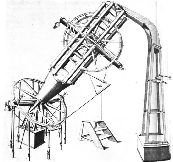 反射望远镜的赤道装置提出了一些特殊问题。约翰·哈德利(见Smith,Opticks,Vol.Ⅱ,pp.305ff. ,366ff. ,和Phil.Trans. ,1723,Vol.Ⅹ Ⅹ Ⅻ,p.303)和帕塞芒(Description et usage des Télescopes,1763)在制造和装置这类仪器的方法上取得了进步。但是,十八世纪在这个领域中的一切进展都因威廉·赫舍尔爵士的成就(见第四章)而黯然失色。