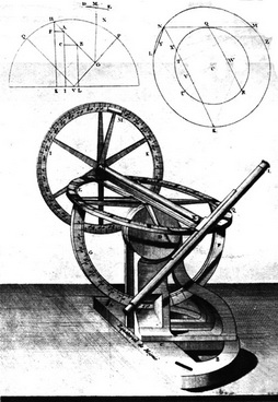 十七世纪天文学已有这种赤道形式装置的先例。克里斯托弗·沙伊纳在他的《奥尔西尼的玫瑰花》(Rosa Ursina,1630,p.347ff.)中就描述过这样一种装置(他认为这是克里斯托弗·格林贝格尔的发明)。一架用来把太阳的像映射在一个屏上的望远镜绕一根极轴转动,并可在一条分度弧上自由移动赤纬47°,以便能在整个太阳赤纬的周年循环中始终跟踪它。此外,罗伯特·胡克在他的《天文机器主要部件的诘难》(Animadversions on the First Part of the Machina Coelestis)(伦敦,1674年,p.67ff.;转载于Gunther,Early Science in Oxford,Vol.Ⅷ)中不但描述了象限仪的赤道装置,而且描述了他自己发明的一种装置,“借助它,一旦象限仪调整好,并瞄准目标,就可以在观测者所要求的任何长时间内保持这种状态,而根本无需观测者操劳。”弗拉姆斯提德在格林威治的赤道装置六分仪可能就是受胡克思想影响而制造的。十七世纪末年,勒麦在哥本哈根圆塔的天文台就可能有过一架配有分度圆和读数显微镜的赤道装置望远镜(P.Horrebow:Basis Astronomiae,Havniae,1735,Ch.VI)。卡西尼家族也使用过这种赤道装置(Mém.de l’Acad.Roy.des Sciences,1721)。