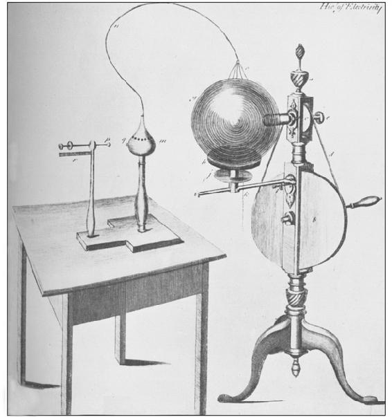 属于自然科学最古老分支的力学和光学是十七世纪里物理学取得最大进展的两个部门,而由吉尔伯特和冯·盖里克开辟的摩擦电的领域则是十八世纪里物理学取得引人瞩目发展的部门。然而,摩擦电研究起初必定进展缓慢,因为它完全依赖于那些没有任何理论指导的偶然观察。每一门精密科学都要经历这样的最初阶段,而电科学是物理学各主要分支中最后一个脱离这一阶段的。直到进入十八世纪很久以后,电学才进入以在假说性概念指导下的系统实验为表征的第二阶段。早期阶段,以豪克斯贝和迪费等人为代表,他们的活动期恰逢十八世纪初年。站在前人肩膀上的富兰克林和埃皮努斯属于第二时期。但是,等到十八世纪末,方才通过定量观察而达致精确的摩擦电定律。这是库仑的功绩,后来使静电学终于成为一门精密科学的数学演绎正建基于他的实验研究。