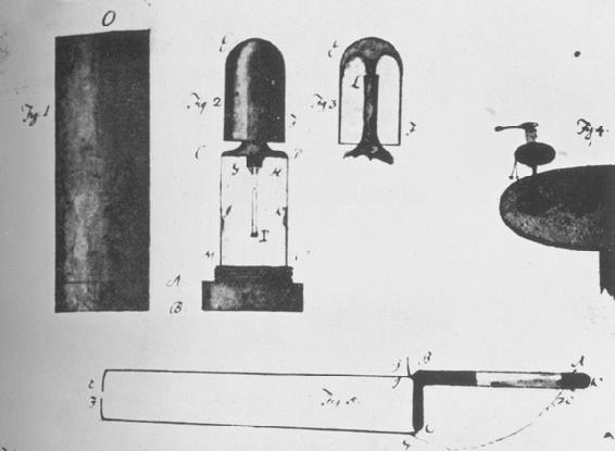 Danzig,I,1747,pp.506—34;格雷拉特对他的仪器的描述见诸他的论文第IV节)伏打试图沿相当类似的路线使起电程度的量度标准化,正如他于1787年致利希滕伯格的第二封信中所说明的那样。他使一个带电体与一个直径5英寸的金属圆盘处于导电的相联接,金属圆盘从一架天平的横梁上用丝线悬吊,以使它位于一块水平接地板上方2英寸处。他求出,当把金属圆盘与一个莱顿瓶相接时,需用多少砝码才能平衡对金属圆盘的吸引。这时经量度的一系列电荷被供给莱顿瓶。他还试图把这些砝码与附装在莱顿瓶上的一个亨利象限静电计所显示的相应偏转关联起来。