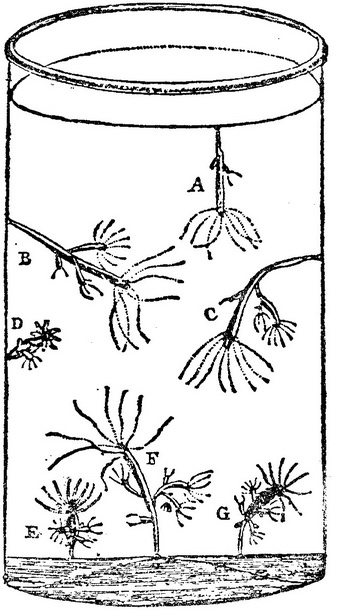 特伦布利的实验确凿地表明,一个水螅可以切成一块一块,而每一块都能长成一个新的完全的个体。他还观察了通过出芽的自然再生和产卵。他相信,卵生产新的个体,但是,支持这种信念的证据尚不足以使他确信:他接受的这个观念不止是个尝试性假说。