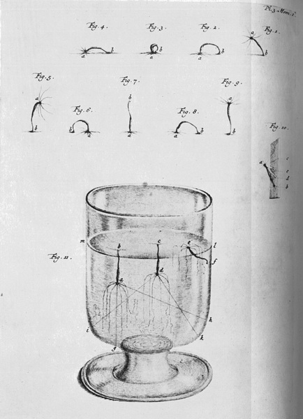再早一些年,菲利普·米勒在《园艺师辞典》(Gardener’s Dictionary)中综述了一切已有的植物生殖知识;通过比较,他对动物生殖知识的现状提出了一些中肯的意思。他写道:“显而易见,为了使果实完善,必须由花粉或雄性花粉给花的胚授精;可是,授精是怎么或在什么中进行的问题,我们现在只能作些猜测,因为在动物生殖问题上,我们最伟大的博物学家们意见分歧很大,他们中也没有人能确定授精的具体方法。”他在另一处写道:“至于传粉致使结实的方式,杰弗罗伊先生提出了两种见解……雏形植物据认为包含在种子之中,只待适当的液汁来展现它的各个部分,使它们生长。”