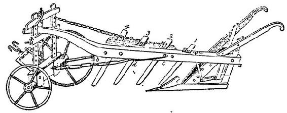 农具方面,十八世纪的贡献在于发明了一些新的农具,改良了旧的农具。直到十六世纪所应用的犁是笨重的双轮机械,每架都需要六至八头牛的一支牛队。然而,荷兰在十六世纪某个时候发明了一种较轻的犁,两匹马就能拉动。这种犁在十六和十七世纪里从荷兰引入了英国,尤其是诺福克和萨福克。1730 年,迪斯尼·斯塔尼福思和约瑟夫·福尔贾姆获得了一种称为罗瑟拉姆犁的改良犁的专利权(图199)。约翰·阿巴思诺特和詹姆斯·斯莫尔作出了进一步改良。约在同一时候,杰思罗·塔尔发明了一种四刀浅耕犁,用于犁除杂草,更有效地把它们埋在土壤下面。类似的犁似乎在十七世纪才在荷兰出现。