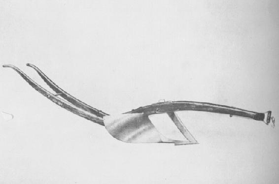 约在1760 年发明的斯莫尔木犁(图201)十分引人瞩目。因为,虽然它十分轻,两匹马就能拉动,但它却同六到八头牛拉的重型犁一样有效。约在1780 年,引入了一种改良的木犁,它有铁制的犁壁。不久,斯莫尔制成了一种全铁的轻犁。