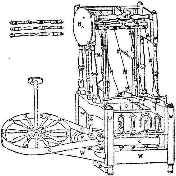十八世纪在纺纱发明上表现出很大的独创性。这些发明是:用辊处理纱线、把锭子安装在可动的走车上以及大大增加一个操作工所能照管的锭子数目。
