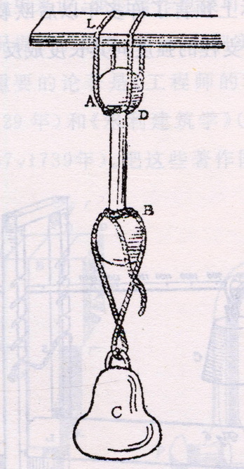 代表截面宽度,d代表其深度)成正比,同L(即梁的跨度)成反比。像马里奥特一样,他也正确地指出,将一根梁的两端固定,在跨度中间加载,它的支载能力倍增。他采用的支柱长而细,他的试验实际上预言了许多年以后欧勒从理论上推出的结果,即一根给定截面支柱的强度同其长度成反比。