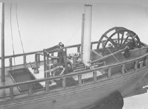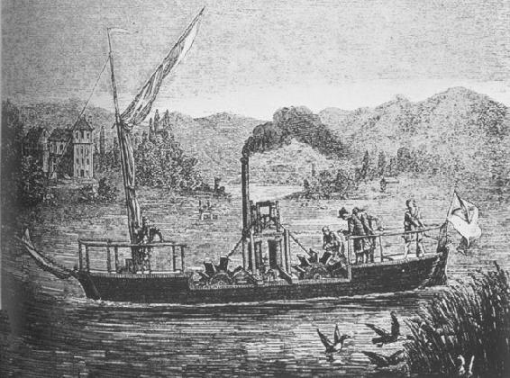 十八世纪后期蒸汽机的用途中,船舶的推进该不是最不重要的,虽然在这个时期里,还只是给小船配备这种新动力。德尼·帕潘在1707 年最早认真提出,把蒸汽动力用于此目的的建议。他曾试图获得汉诺威选帝侯准许,派一艘船从卡塞尔航行到不来梅,以便演示,蒸汽力可实际用于牵引船只,使它向威悉河上游和沿富尔达运河航行。帕潘打算用一种改动过的萨弗里蒸汽泵(其中蒸汽和水用活塞隔开)来提升水,让水在一个轮子上通过,而这轮子同驱动这船的明轮装在同一根轴上。但这项请求未蒙允准。因此,帕潘倒避免了一次代价高昂的失望,因为最早商用上成功的蒸汽机即纽可门蒸汽机直到1710 年才有供应。