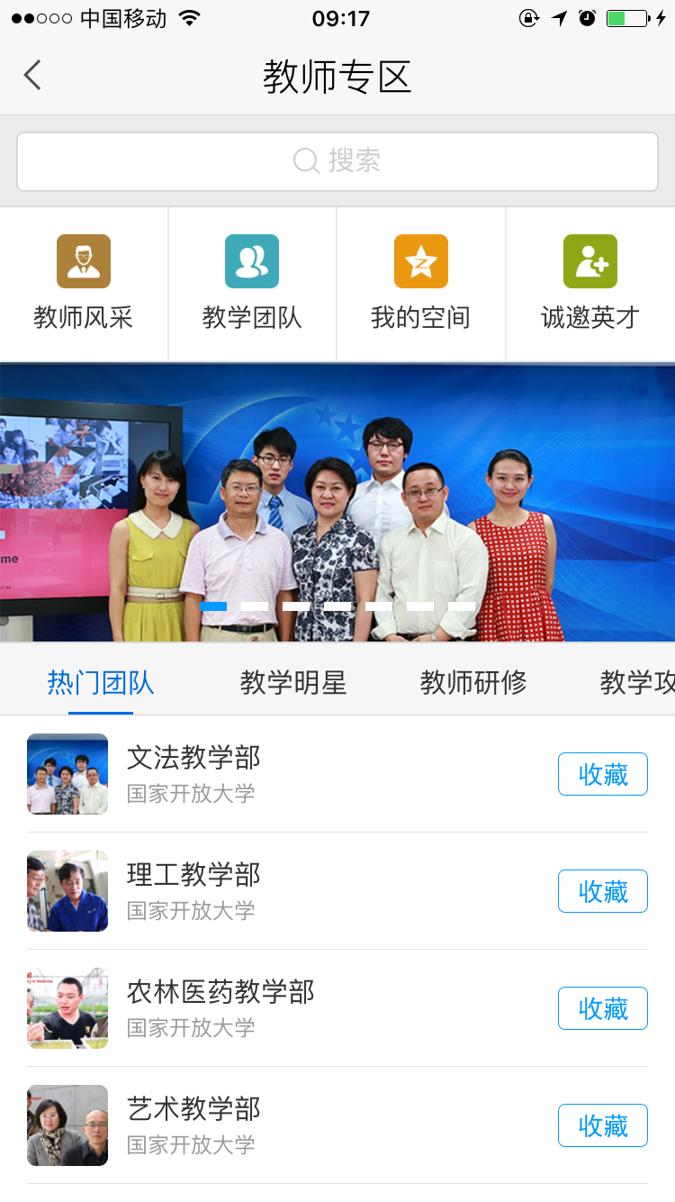 主栏目模块有教师风采、教学团队、我的空间、诚邀英才等。