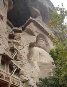 佛教及其艺术从印度沿丝绸之路传入中国,在甘肃、河南等地发现的石窟壁画和其他一些文物均有反映。他们多受希腊绘画艺术、佛教艺术的直接影响。如莫高窟,位于甘肃省敦煌东南25公里。“现存有壁画或塑像的洞窟492个,彩塑2000多个,壁画45000多平方米……是世界艺术史上的伟迹。莫高窟壁画和塑像受中西方文化交流的影响十分明显。早期北魏石窟中的作品如裸体菩萨等,就有从西域传入的带有希腊、印度的犍陀罗作风。身缠联珠纹衣服的隋代菩萨和胡装的唐天子,也显然受了希腊、印度文化的影响”。⑥再如炳灵寺石窟,位于甘肃临夏西北约50里,是南线“丝路”黄河渡口上的要道。炳灵寺石窟……多而华丽,大佛原来和莫高窟一样,有数层楼阁,覆盖十丈金身。清同治初一次战争中被大火焚毁,十余丈高的烈焰直冲崖顶的时亮窟,使窟顶的砂崖爆裂,壁画塌落。至今大佛周围还可以看到烧得只剩半截、插在崖上的桩柱。“现存183龛窟,初步可以断定,有魏12龛窟,唐106龛窟,明5龛窟其它60龛窟。最早的石刻题记是169窟的西秦建弘元年(公元420年)造像题记”,“但冯国瑞先生曾与西秦乞伏磐所造的弥勒龛中发现永康四年(公元415年)题记”。⑦还有麦积山石窟,坐落在甘肃省天水东南45公里的一座浑圆如麦垛的红色独峰中。它以精妙卓绝的雕塑见长。“在其全部194个龛窟崖刻中,有泥塑石雕7200多尊,还有部分壁画,有东方雕塑之馆,极重要的雕塑宝库(郑振铎语)之称。”⑧这些石窟雕塑绘画艺术,都在丝绸之路的交通要道上,是丝绸之路畅通后中外文化交流融合的产物。它们证明丝绸之路和石窟艺术存在着密切关系。