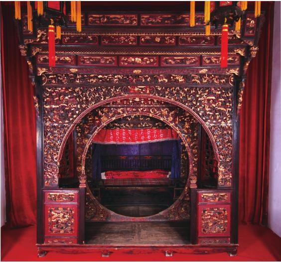雕花床是渝派雕刻工艺精髓的集成体现,它是在明代“拔步床”的基础上发展而来,是南北床饰相融合的产物。它经历了由简陋到精美、由重实用到重实用与观赏相结合的发展过程,富丽豪华、繁缛雕琢,极富特色。