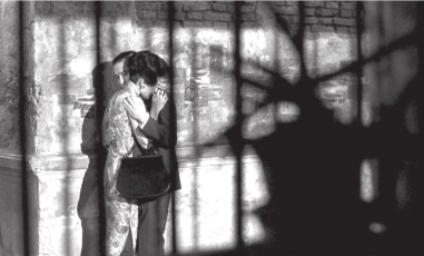 在《花样年华》中,影片采用暗淡压抑的色调,暗示了故事中的时代气氛、生活真实和情感主题,造成一种阴暗、低沉、压抑、伤感的氛围(图15-7)。暗色调在《花样年华》中的使用给人造成一种怀旧、饱含忧思的思绪。导演在选景时,把人物设置在昏暗的楼梯、走廊、黑暗的街道中……灰暗的画面效果为影片蒙上了一层时代的影子,很容易使观众融入到20世纪60年代香港的社会状况中,从而更能切身领会影片中两个主人公的感情遗憾。暗示着周慕云和苏丽珍不可能击破那块“积着灰尘的玻璃”,他们终究不可能越过内心中道德的束缚。而且整部影片基本上以灰暗的色调为背景,使主题显得深沉、压抑,把观众的思绪带入了一种“悲”的 状态,使人预感到了影片“悲”的结果,让人感受到了一个发生在20世纪60年代香港的爱情故事的真实。