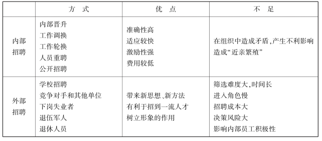 人员招聘的渠道主要有两种,即内部招聘和外部招聘。这两种渠道各有优缺点(表7.1),实际工作中要根据实际情况做选择。