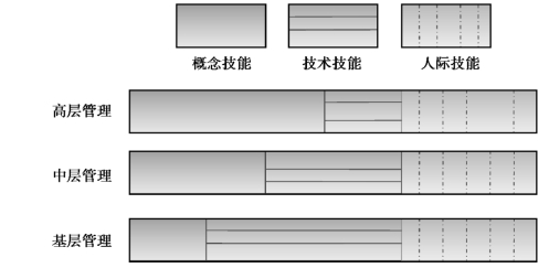 综上所述,各种技能在组织的不同管理层次之间的相对重要性是不同的。越是高层管理者越要有较强的概念技能,因为他们是影响决策的主体,他们的战略眼光、战略思想与战略决策关系着组织的生存与发展及事业的成败。人际技能对于所有管理者都很重要,因为任何管理者所实施的管理及其任务的完成,都离不开他人的积极配合与协作。越是基层管理者越要有较强的技术技能,否则,他就难以随时随地给予下属以具体的指导和帮助,但对高层管理者而言,技术技能则处于次要地位,因为高层管理者完全可以有效地利用下属的业务技术能力来实施管理。