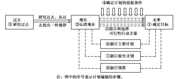 计划过程是一个复杂、有组织的过程。计划的种类很多,不同类型的计划,其制订程序不尽相同,但一般说来,计划的编制过程要经过必要的几个环节或步骤,如图4.4所示。
