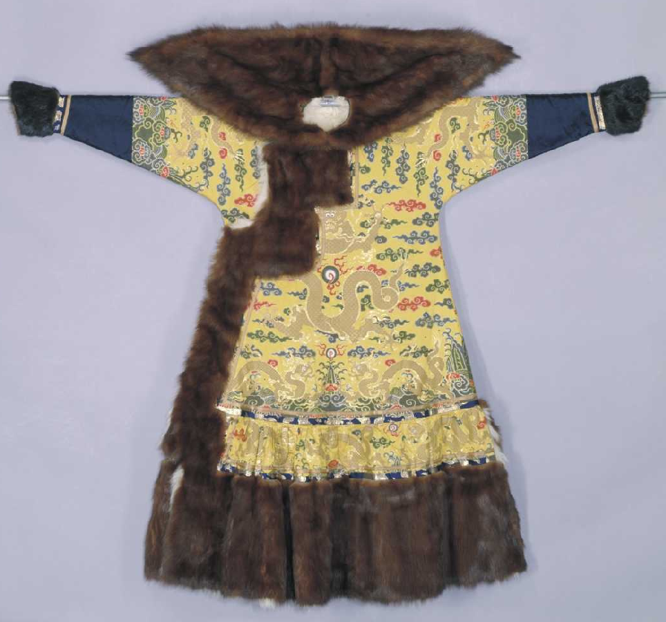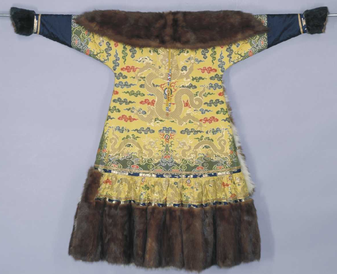 ▲明黄地彩云金龙妆花缎貂皮朝袍背面