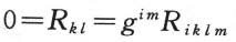 1)由度规(2)的系数所形成的黎曼的曲率张量Riklm等于零。
