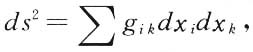 关于下标ik从1到4累加起来。这些gik是四个坐标的函数,根据等效原理,它们除了度规之外也描述引力场。后者在这里是同任何特性无关的。因为它可以通过变换取