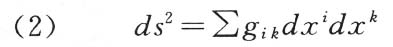,这些gik形成一个“对称张量”,并且都是x1,…,x4的连续函数,按照“等效原理”,它们描述一种特殊的引力场(即可以再变换成形式(1)的引力场)。根据黎曼关于度规空间的研究,这种gik场的数学性质能被确凿地规定下来(“黎曼条件”)。然而我们所要寻求的是“一般”引力场所满足的方程。我们自然要假定它们也能被描述成gik类型的张量场,但一般不允许变换成形式(1),这就是说,它们不满足“黎曼条件”,而只满足一些较宽的条件,这些条件也像黎曼条件一样是同坐标的选取无关的(也就是广义不变的)。作简单的形式考查,就可得到同黎曼条件有密切联系的较宽的条件。这些条件就是纯引力场(存在于物质的外面并且没有电磁场)的方程。