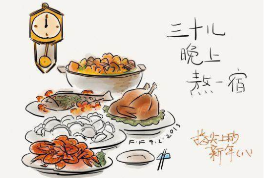 中国民间在除夕有守岁的习惯,俗名“熬年”。守岁从吃年夜饭开始,这顿年夜饭要慢慢地吃,从掌灯时分入席,有的人家一直要吃到深夜。