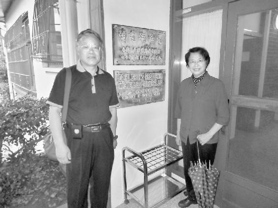 上海的胡适之墓 作者夫妇在胡适故居前留影