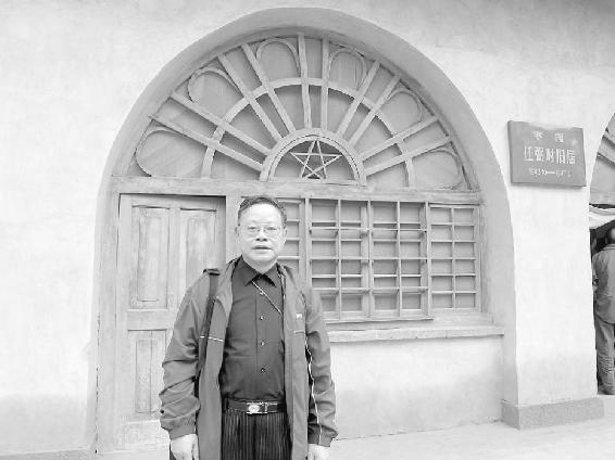 作者在延安任弼时旧居前