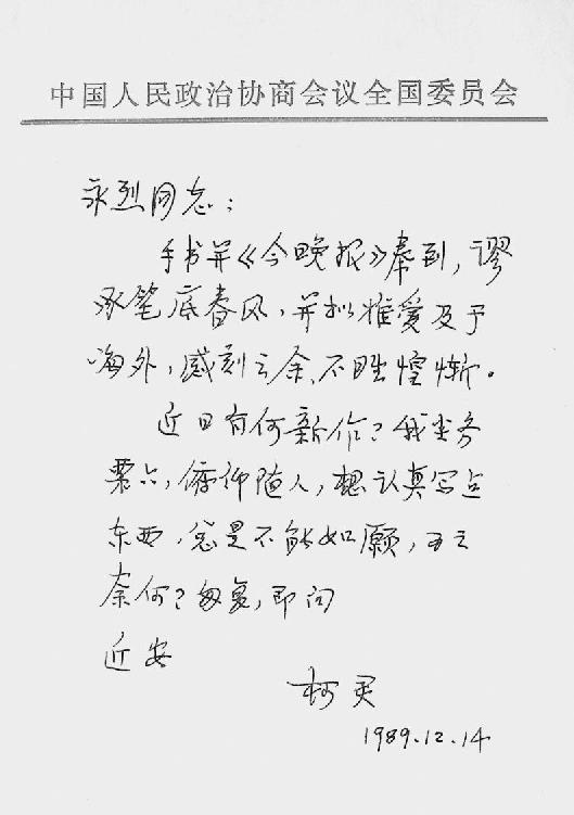 就在我把信扔进邮筒不久,我从报上读到了庆贺柯灵八十华诞的消息。我真有点后悔,不该在老人忙得不亦乐乎的时刻去打搅他。我想,他大约在忙完这一阵子之后,安定下来,才会给我复信。