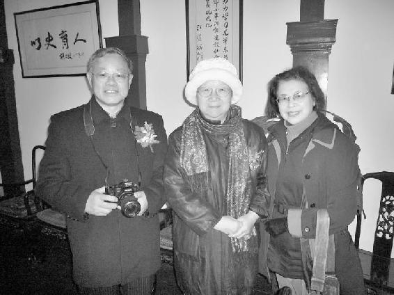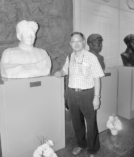 2008年作者夫妇与刘松林在上海 作者在丹东抗美援朝纪念馆的毛岸英塑像旁