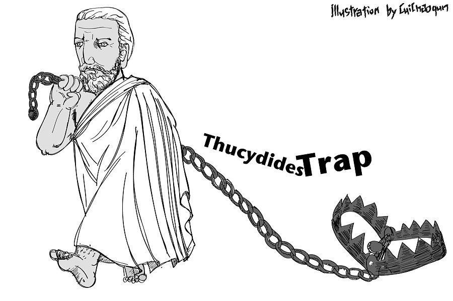 修昔底德陷阱的说法源自古希腊著名历史学家修昔底德的观点,这位历史学家认为,当一个崛起的大国与既有的统治霸主竞争时,双方面临的危险--正如公元前5世纪希腊人和19世纪末德国人面临的情况一样。这种挑战多数以战争告终。公元前5世纪,雅典的成就急剧崛起震惊了陆地霸主斯巴达。双方之间的威胁和反威胁引发竞争,长达30年的战争结束后,两国均遭毁灭。