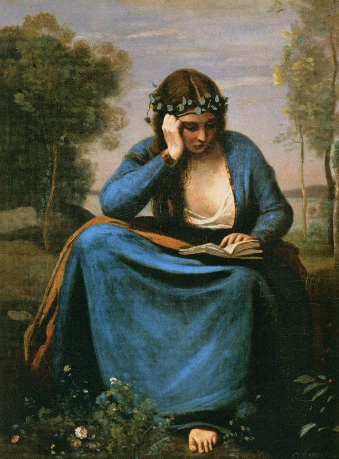 戴花冠读书的女子 柯罗 法国 1845年 布面油画 47x34cm 巴黎卢浮宫藏