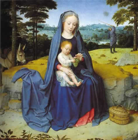 赫拉德·戴维《逃亡埃及途中的休息》约1510年44*45cm
