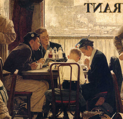 2013年12月4日,在纽约苏富比举行了美国艺术专场拍卖会上,诺曼·洛克威尔(Norman Rockwell)1951年创作的作品《祈祷》(Saying Grace),估价5,000,000至20,000,000美元,经过场内买家激烈竞争,最终以46,085,000美元成交,创下此艺术家在拍场的最新记录。画中露着后脑勺的小男孩和穿戴整齐的祖母,在火车站旁一个破旧的餐厅里,低头为桌上的饮食向上帝祈祷。与他们同桌两位吊儿郎当的青年,一位手指夹着烟头,一位嘴角咬着根烟,殷切地注视他俩。